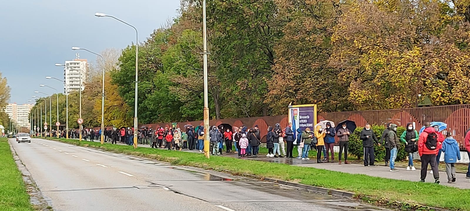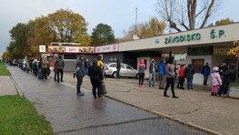 Veľké odberové miesto zriadili na Závodisku. Ľudia sa pred dostihovou dráhou začali zbierať už po šiestej hodine ráno, keď tu vznikol dlhý rad. Odberné miesta mali otvoriť o siedmej, čo sa nepodarilo a začali sa stupňovať emócie. Okolo ôsmej, keď sa ešte stále netestovalo, boli už ľudia poriadne nahnevaní. Nadávali na premiéra i personálu testovania. Ten zas argumentoval, že im neprišli zdravotníci a vietor im v noci postrhával stany. To sa dialo i ráno, videli sme, ako vietor dva stany vyvrátil.