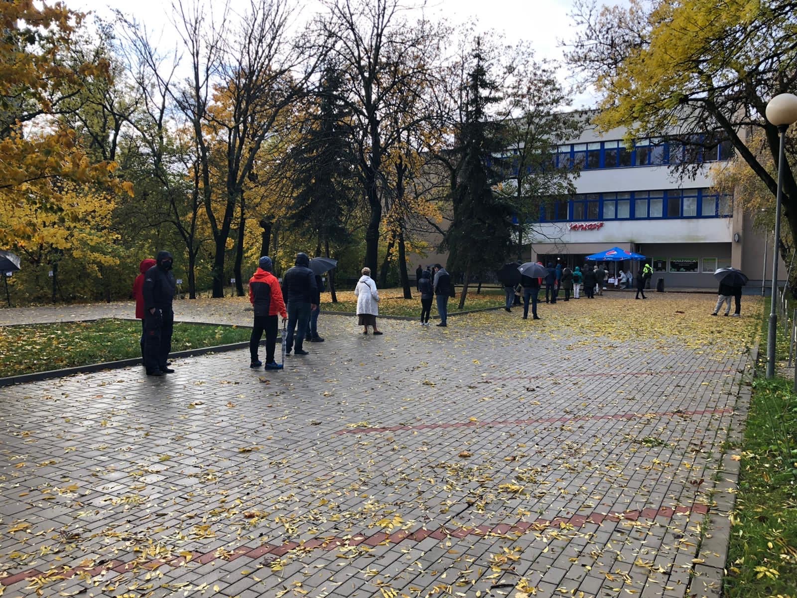 Situácia dnes ráno pred odberným miestom na ZŠ Mudroňova v Starom Meste, odberný tím začal robiť výtery od 8 hodiny, vypadla im totiž lekárka. Ľudia, ktorí prišli po 6 hodine, sa ešte nedostali na rad.