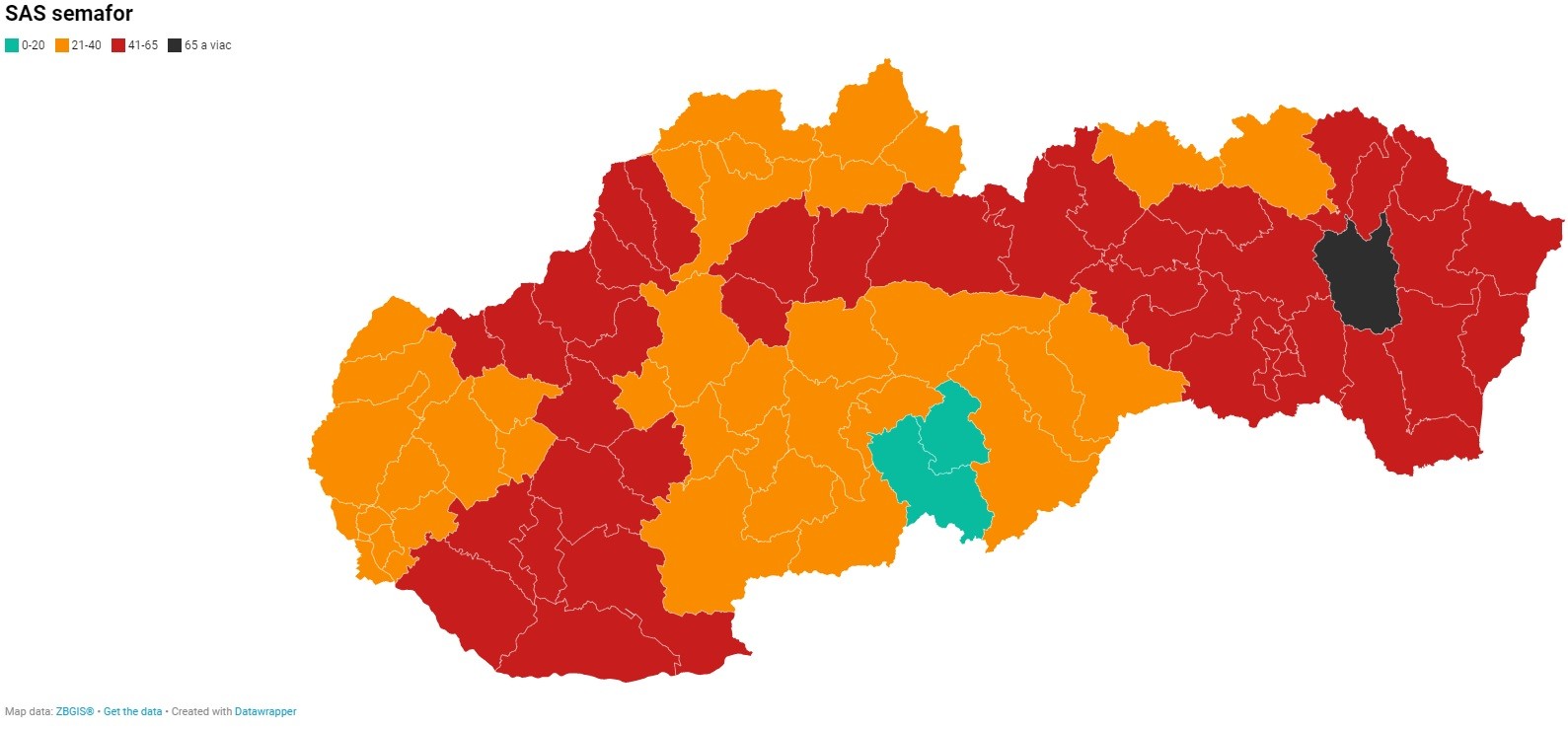 Takto by dnes boli sfarbené okresy podľa návrhu semaforu z dielne SaS.