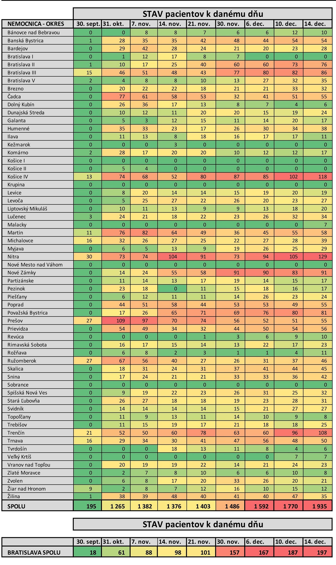 Zásadným problémom Slovenska, pokiaľ ide o šírenie pandémie nového koronavírusu, je stav v nemocniciach a ich preťaženie. Analytici zmapovali situáciu v hlavných nemocniciach a priniesli prehľad o situácii v nich počas posledných troch mesiacov.