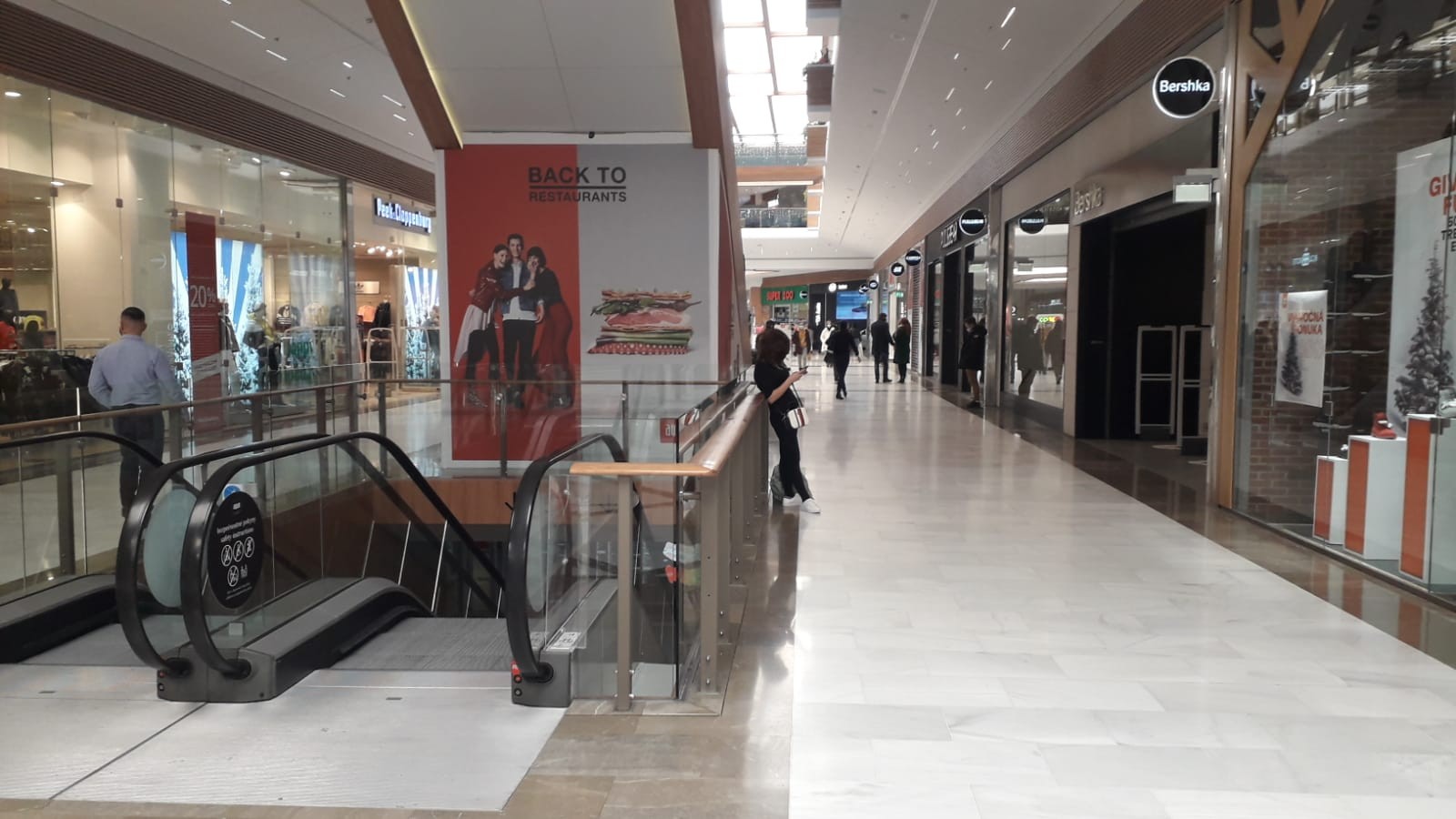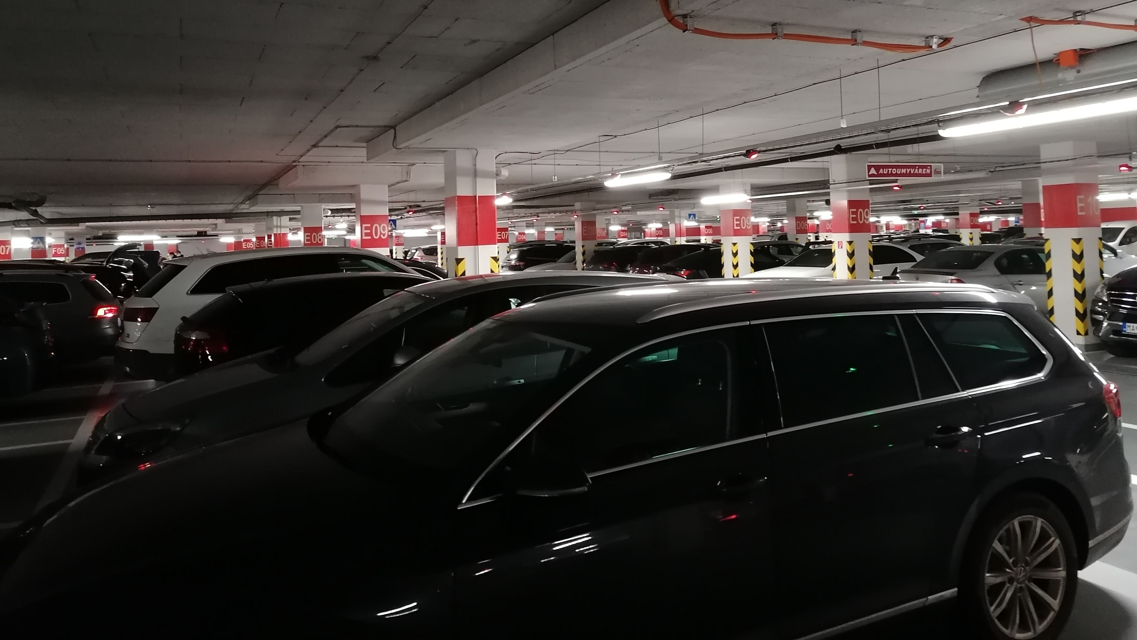 Ešte posledné nákupy. Výjazd z garáže nákupného centra Central krátko pred 21 hodinou. Toto nákupné centrum ani krátko pred zatvorením nebolo preplnené ani sa netvorili rady pred obchodmi.