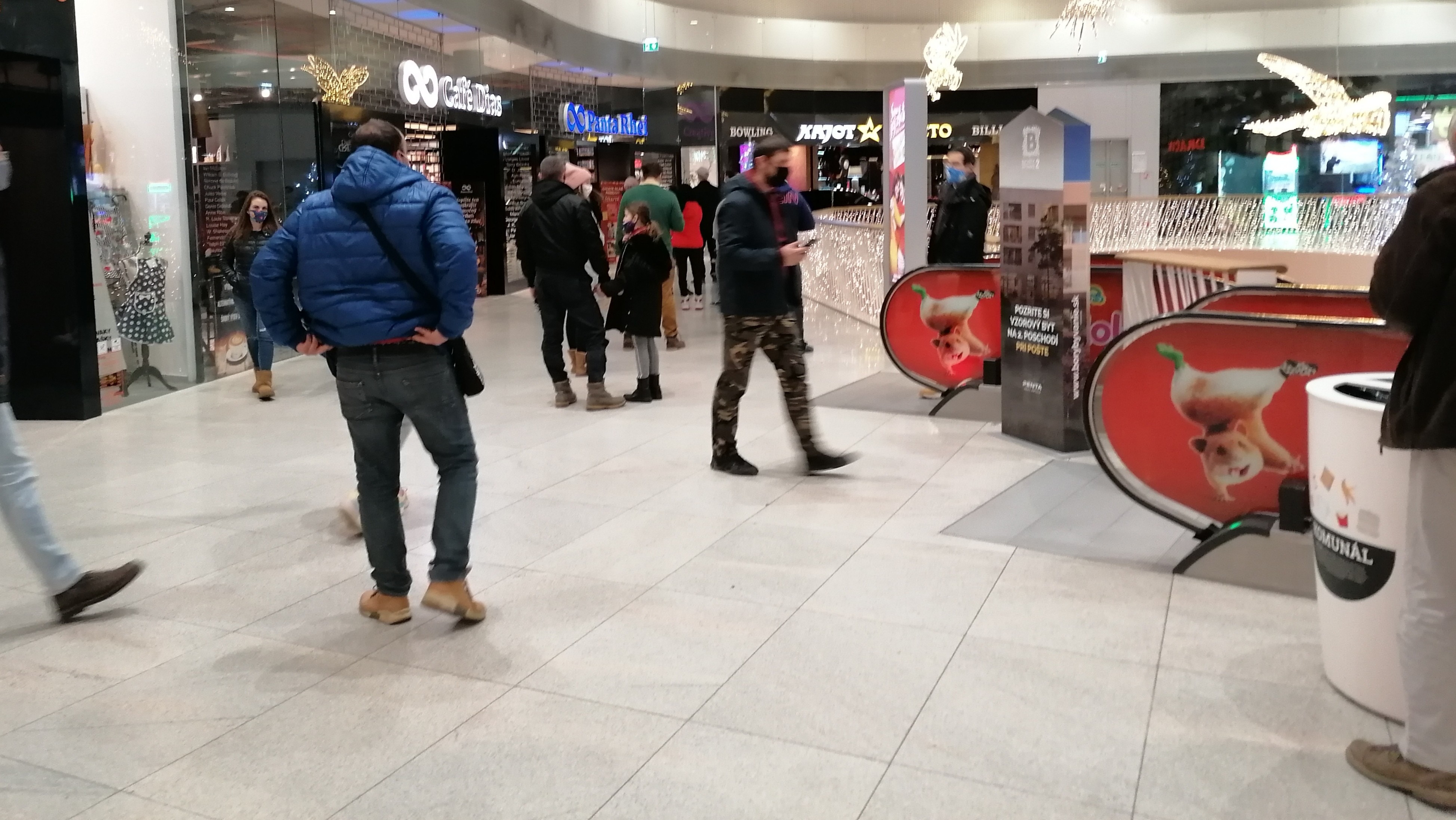 V popoludňajších hodinách sme navštívili aj obchodné centrá so zameraním na dom, byt a zariadenie domácností, kde bola situácia relatívne pokojná. Napríklad v obchode Sconto nábytok sme si bez problémov mohli vybrať miesto na parkovanie čo najbližšie k vchodu a v samotnej predajni bolo len pár ľudí, pokladníčky čakali na zákazníkov, teda netvorili sa žiadne rady a chvíľu sa čakalo jedine na výdaj veľkorozmerného tovaru. Podobne to bolo aj vo veľkoobchode Decathlon pri letisku či neďalekom Hornbachu. Kolóny, ktoré sa v tom čase začali tvoriť na cestách, však svedčili o tom, že asi mnohí sa rozhodli v predstihu opustiť hlavné mesto a presunúť sa na sviatky domov...