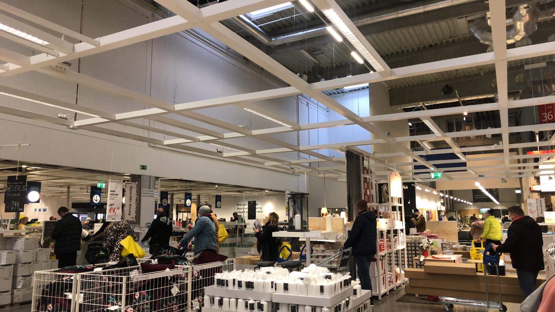 Rad pred pokladňami v obchode s nábytkom a domácimi potrebami pol hodinu po otvorení.