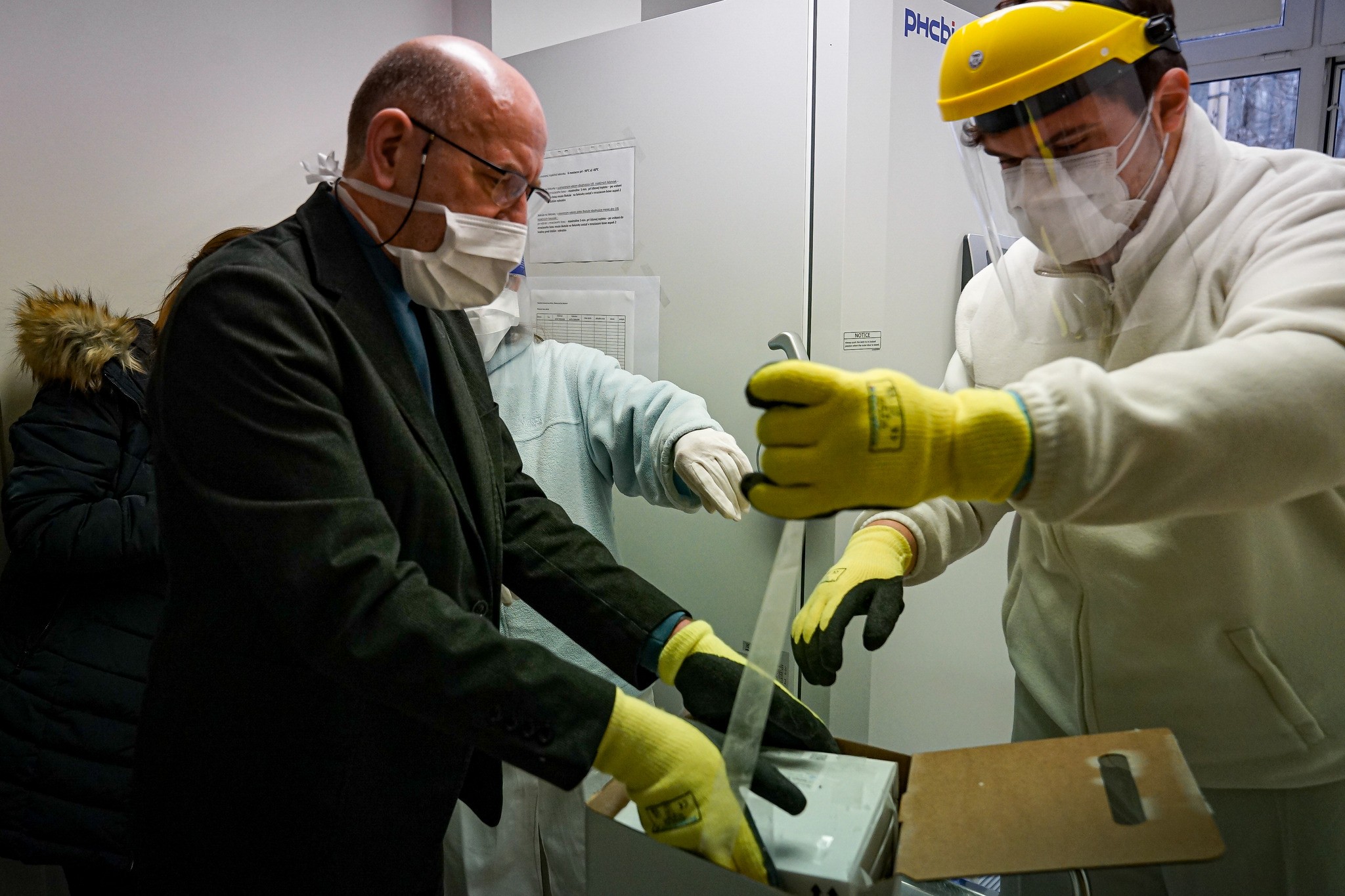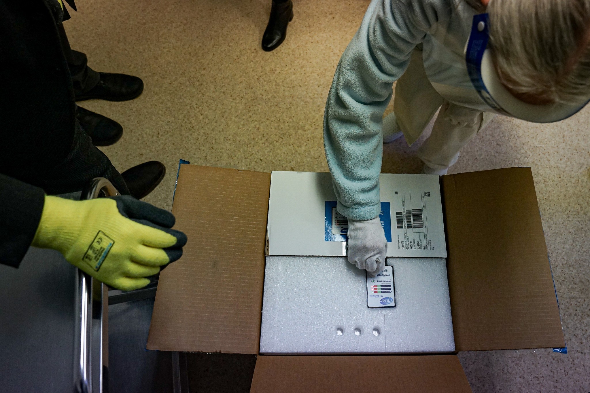 Príchod prvej vakcíny na COVID-19 na Slovensko. Vakcíny boli uskladnené v hlboko mraziacom boxe vo Fakultnej nemocnici Nitra.
