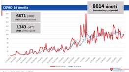 Počet úmrtí na ochorenie či s ochorením COVID-19 je na čísle 8014. V karanténe je 1620 zdravotníckych pracovníkov.