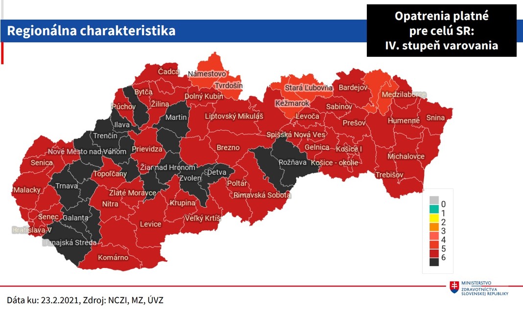 Krajina je v rámci COVID automatu celá čierna. Na Slovensku bude aj na budúci týždeň platiť štvrtý stupeň varovania podľa COVID automatu.
