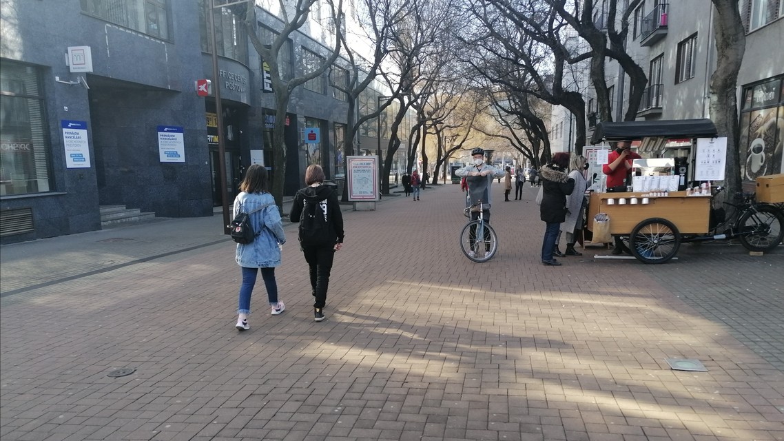 Ani v centre mesta, v pešej zóne, sa veľa nezmenilo. Davy turistov sú samozrejme minulosťou, ulice sú poloprázdne, ale s marcom minulého roka sa to nedá porovnať. Bežne vidíte ľudí, ktorí sa jednoducho prechádzajú, môžete vidieť partie tínedžerov, ktorí spolu konzumujú na lavičkách jedlá z fast foodov alebo sa korčuľujú.