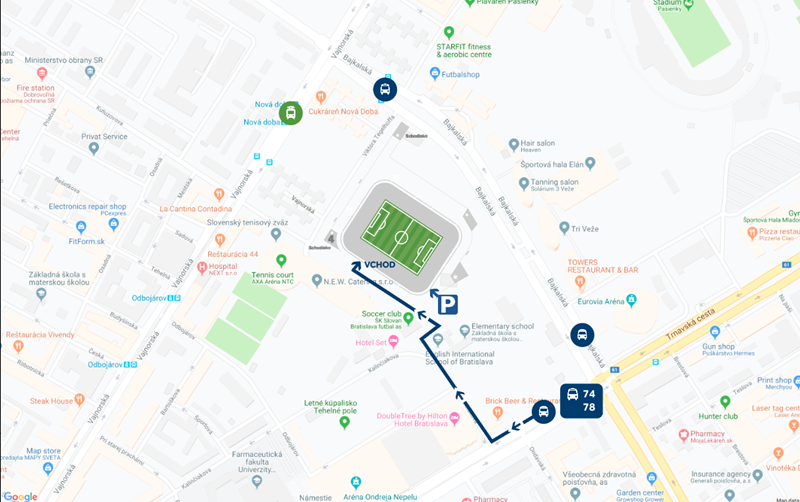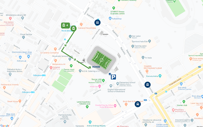 V rámci MHD sa tam dostanete električkou č. 4 a autobusmi 74 a 78.