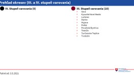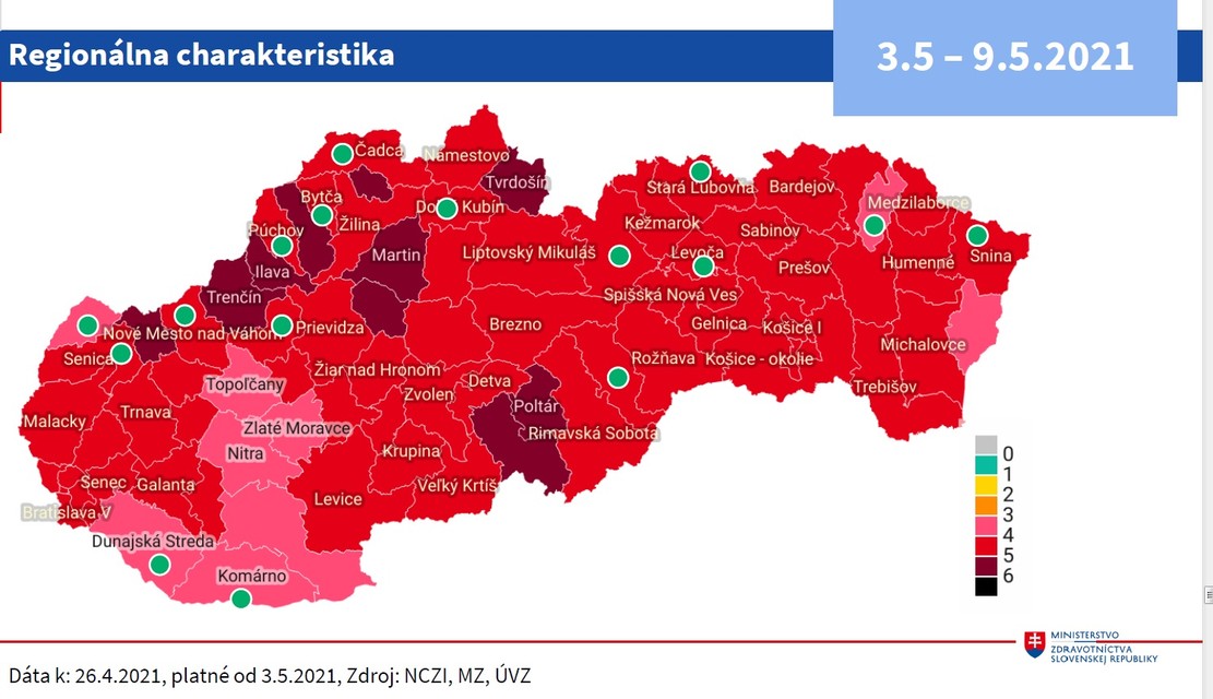 Zákaz vychádzania bude po novom v okresoch s lepšou epidemiologickou situáciou platiť len od 21.00 do 01.00 h nasledujúceho dňa. Týkať sa to bude okresov v I. a II. stupni varovania, teda ružových a červených podľa COVID automatu. V bordových okresoch (III. stupeň varovania) bude zákaz vychádzania od 5.00 do 1.00 h nasledujúceho dňa. Zo zákazu budú výnimky ako doteraz. Od pondelka bude podľa COVID automatu v bordovej fáze desať okresov, červených bude 60 a v ružovej fáze ich bude deväť.