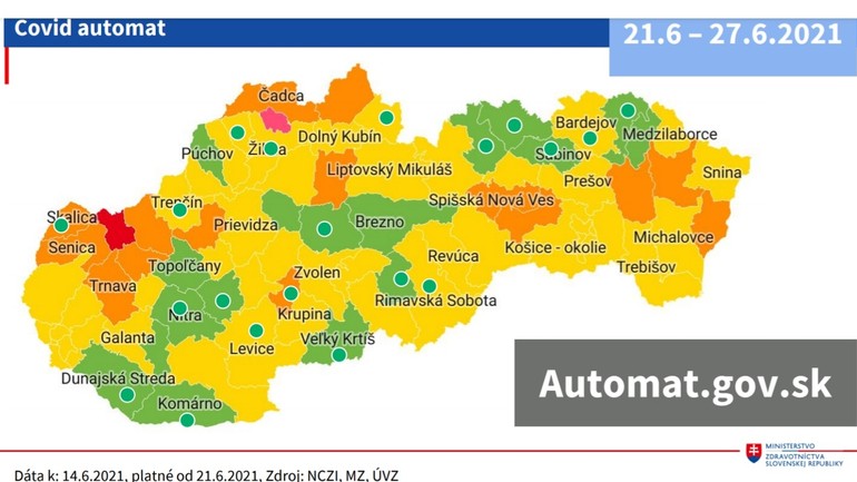 Od pondelka nie je podľa COVID automatu ani jeden okres v čiernej fáze. V druhom aj prvom stupni varovania je zhodne po jednom okrese. V druhom stupni ostražitosti ich je 15 a v prvom stupni ostražitosti 44. V stupni monitoring je 17 okresov.
