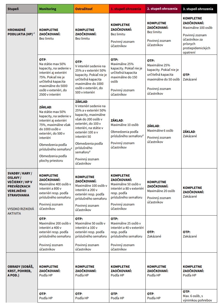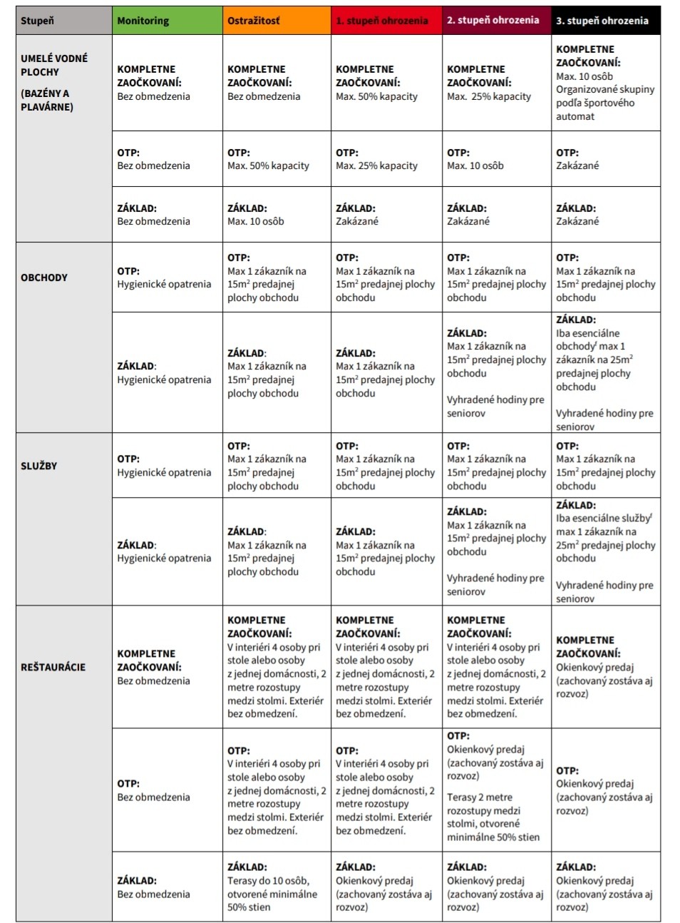 Prevádzky sa po novom budú sami rozhodovať, či budú púšťať iba zaočkovaných, alebo zaočkovaných, testovaných a ľudí, ktorí prekonali ochorenie COVID-19, alebo všetkých vrátane neočkovaných a netestovaných. Podľa toho sa potom budú odvíjať aj ďalšie opatrenia. Ide napríklad o to, koľko ľudí môže byť v prevádzke, pričom platí, že v prípade očkovaných to bude bez obmedzenia počtu, a to až do čiernej farby okresu.