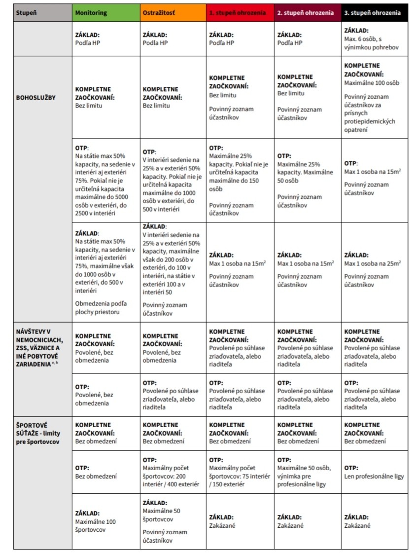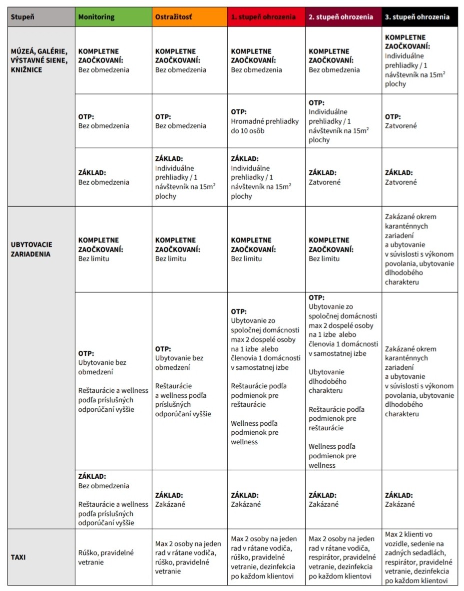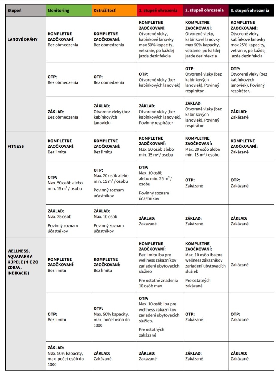 "Prevádzky by to mali dopredu oznámiť, v akom režime fungujú a jeden z predpokladov, aby to fungovalo, je, že sa to bude dôsledne kontrolovať. Ak vybraný režim prevádzky nedodržia, budú sankcie. Presné detaily bude definovať Úrad verejného zdravotníctva (ÚVZ) vo vyhláške," spresnil Mišík. Možnosť vybrať si z troch režimov fungovania sa nevzťahuje na obchody. Dôvodom je, že v nich ľudia trávia menej času a mnohé z nich slúžia na zabezpečenie nevyhnutých životných potrieb.