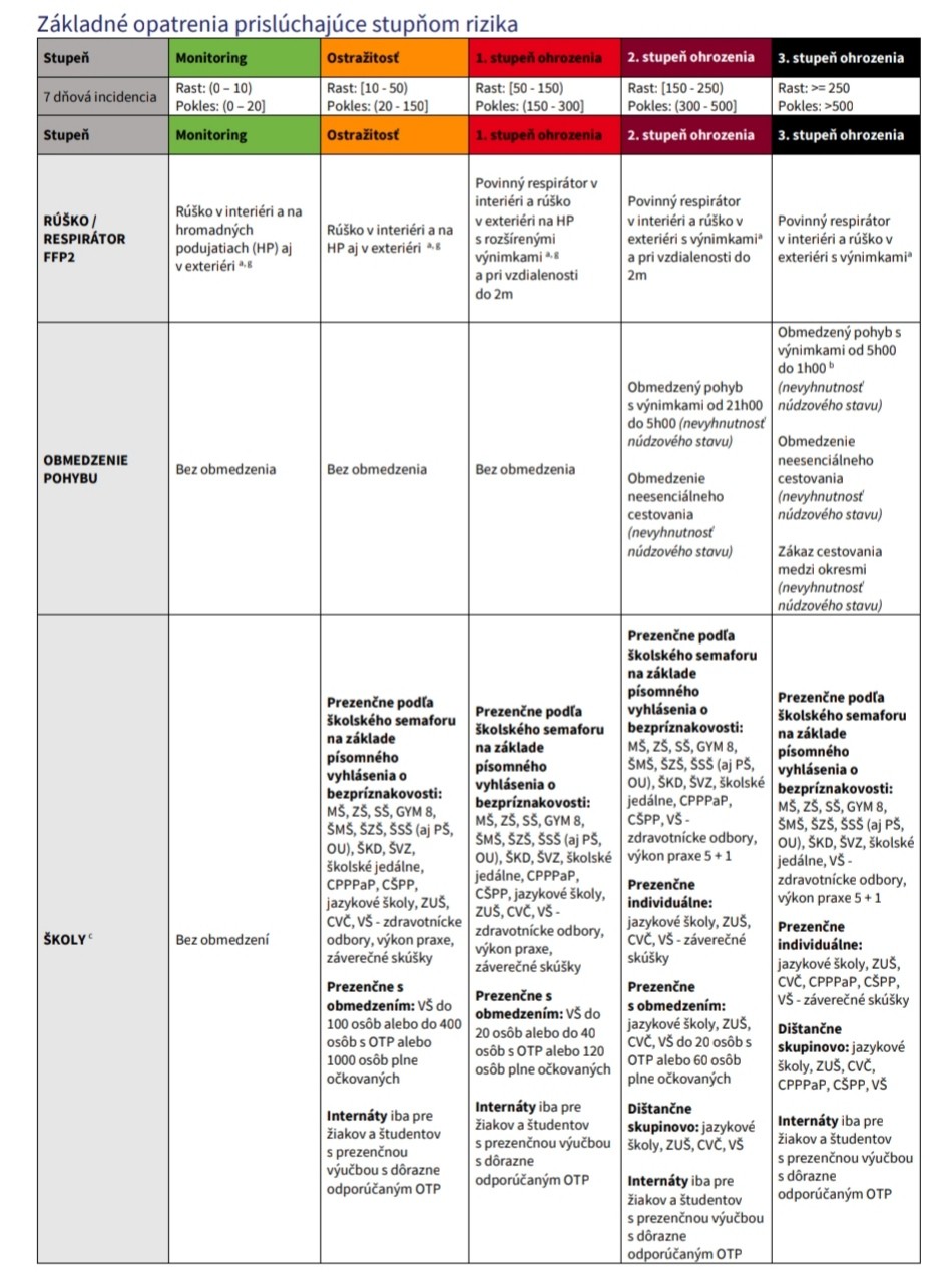 Nový COVID automat zavádza päť farieb rizikovosti okresov - od zelenej (monitoring), cez oranžovú (ostražitosť), červenú (1. stupeň ohrozenia), bordovú (2. stupeň ohrozenia), až po čiernu (3. stupeň ohrozenia). Pri zmene farby sa má brať do úvahy okrem počtu nakazených napríklad aj zaočkovanosť okresu v populácii nad 50 rokov. Čím viac očkovaných v tejto skupine ľudí bude daný okres mať, tým bude väčšia šanca, že sa posunie do lepšej farby a napriek číslu nakazených v ňom budú platiť miernejšie opatrenia.