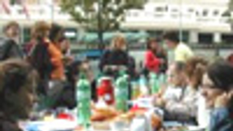Od 11.00 do 16.00 h budú v rámci Dňa európskych jazykov na námestí stánky inštitútov, v ktorých budú môcť záujemcovia nájsť informácie o ich aktivitách, jednotlivých krajinách, možnostiach štúdia a jazykových pobytoch a kurzoch. Podujatie je spoločnou iniciatívou bratislavských inštitútov reprezentujúcich, Nemecko, Taliansko, Francúzsko, Maďarsko, Rusko, Španielsko a Veľkú Britániu, Bulharsko, Poľsko, Rakúsko a Informačnej kancelárie Rady Európy.