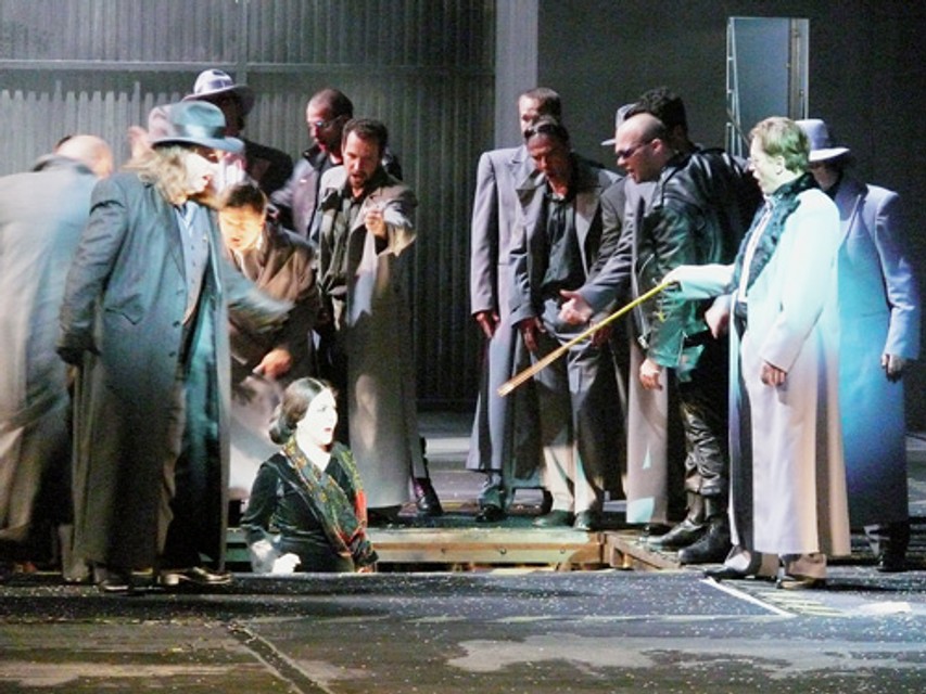 Dej prvej opery, ktorú uviedli v novootvorenom Slovenskom národnom divadle, sa odohráva v garážach. Scéna Juraja Fábryho je strohá, paradoxne však poskytuje široký priestor, aby sa na nej odhral vášnivý príbeh lásky Trubadúra a odznelo posolstvo milujúcej, ale aj pomstychtivej Azuceny.