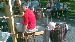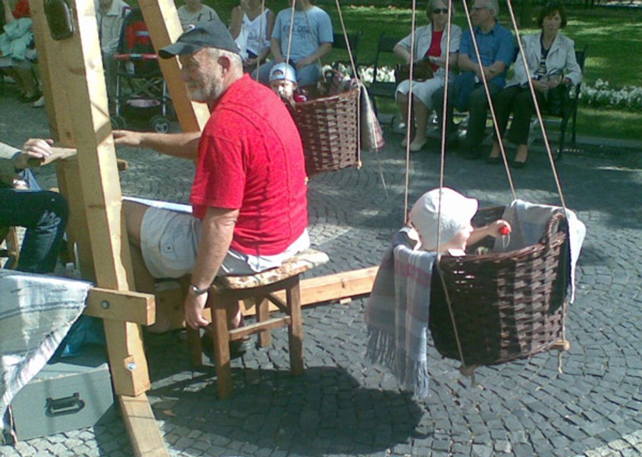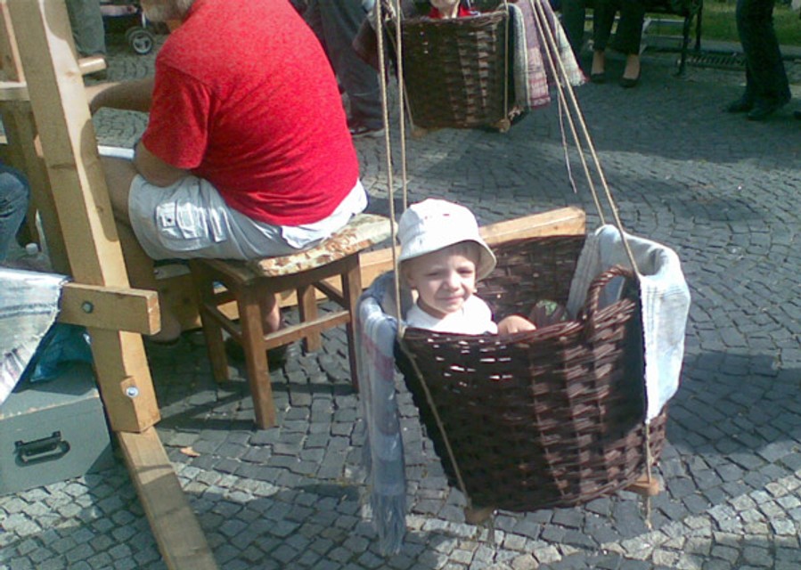 "Z krútenia ma bolia ruky, preto som sa striedal so synmi Tomášom a Mátyásom," povedal Ladislav Zupko z Fiľakova. Raritný kolotoč si vlastnoručne zhotovil pred troma rokmi. Okrem skladacej drevenej konštrukcie má štyri závesné prútené košíky pre deti do hmotnosti
