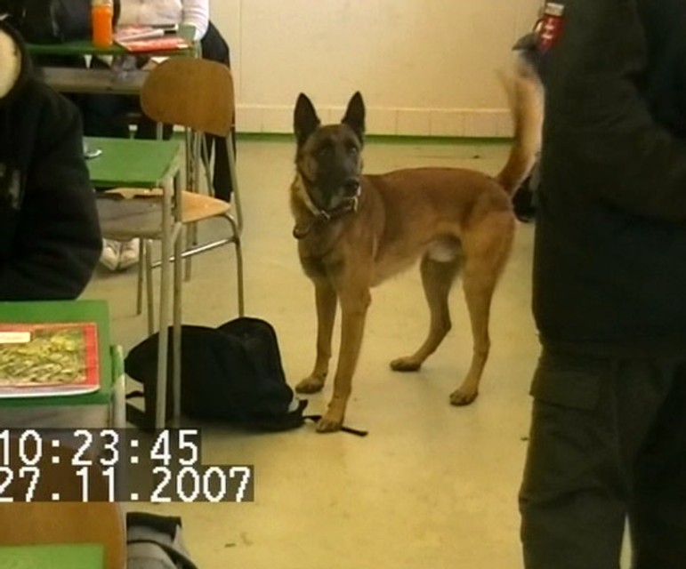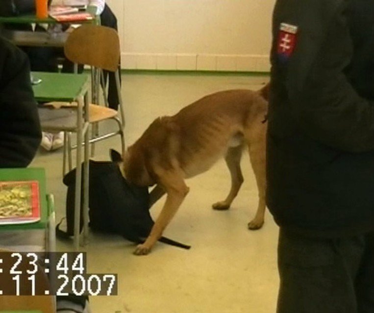 Počas akcie pes menom Satan označil policajtom podozrivé miesta, keď sa zastavil sa pri jednej lavici a na ďalšom mieste v triede pri ruksaku. Policajti následne zaistili igelitový sáčok s obsahom neznámej zelenej sušenej rastliny a 1ks tzv. bongo určené na fajčenie marihuany.