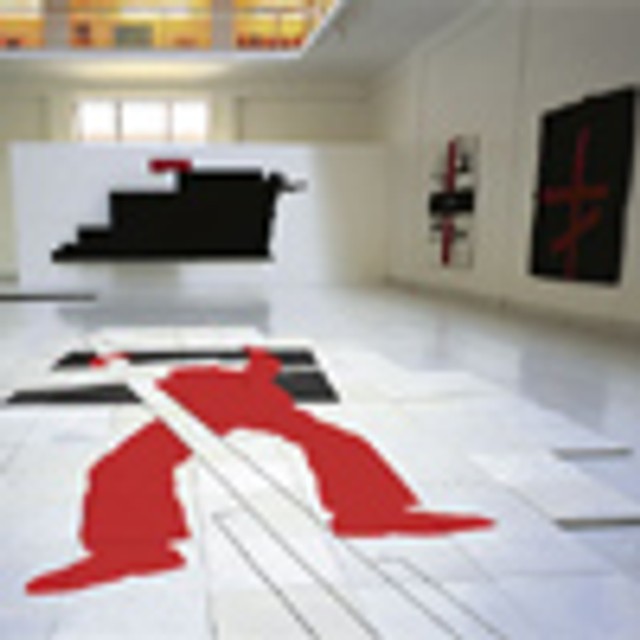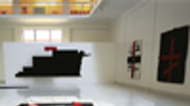 Medzi exponátmi výstavy R. Sikoru je aj rozmerné dielo Dlažba pre Maleviča (VPRED!).