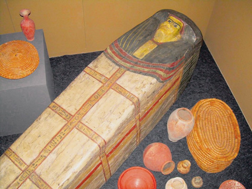 Medzi exponátmi výstavy Théby. Mesto bohov a faraónov sú aj zdobené drevené rakvy.
