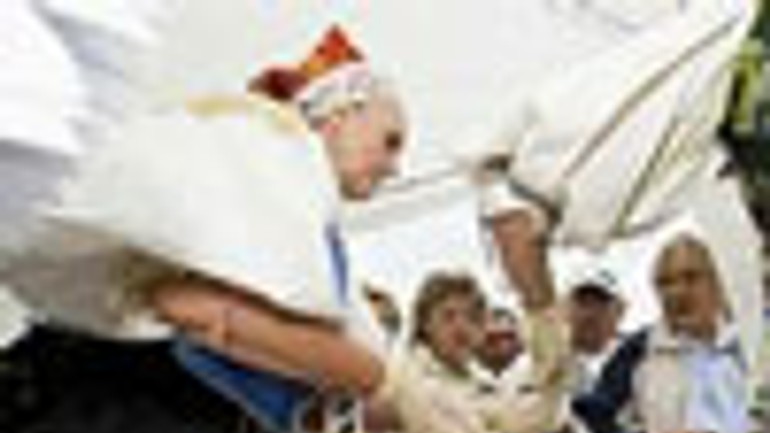 Nakrájaný koláč napokon predali účastníkom dožiniek za symbolické ceny. Výťažok vo výške 3960 Sk poskytol starosta obce Ján Mrva na účet miestnej materskej školy.