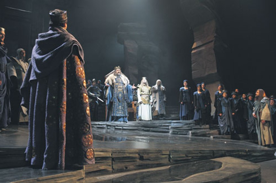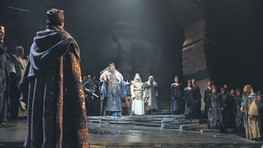 Práve k tomuto aspektu celkového vyznenia opery nepochybne prispeli aj kostýmy výtvarníčky Ľudmily Várossovej a monumentálna scéna Milana Ferenčíka.