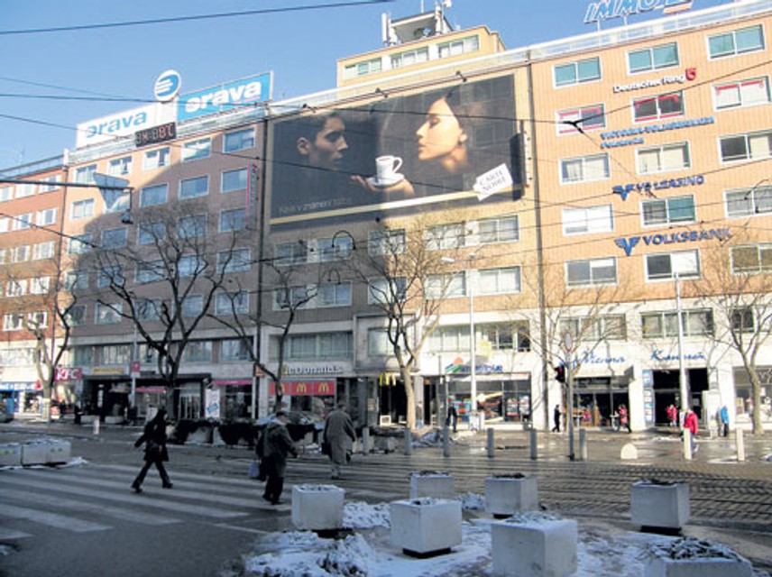 O protiprávnom umiestnení reklamy sme písali pred dvoma mesiacmi (BN 2/2009). Prešiel január, február, pomaly sa končí aj marec, ale všetko zostalo po starom. Kontaktovali sme krajský pamiatkový úrad, kde nám povedali, že úrad vyzval vlastníka budovy, aby dal veľkoplošnú reklamu odstrániť. Vlastník sa vraj má vyjadriť, no úrad bude trvať na tom, aby reklama z domu zmizla a pravdepodobne vyzve aj vlastníka reklamného pútača. Ako dlho však bude celý proces trvať, to si pamiatkový úrad netrúfa odhadnúť.