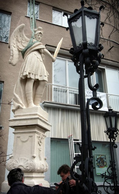 Zreštaurovanú sochu svätého Michala Archanjela dnes opäť osadili na jej pôvodné miesto na Michalskom moste v Bratislave. Vlani v júni padol na sochu počas nočnej búrky strom a úplne ju zdemoloval.