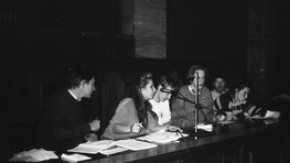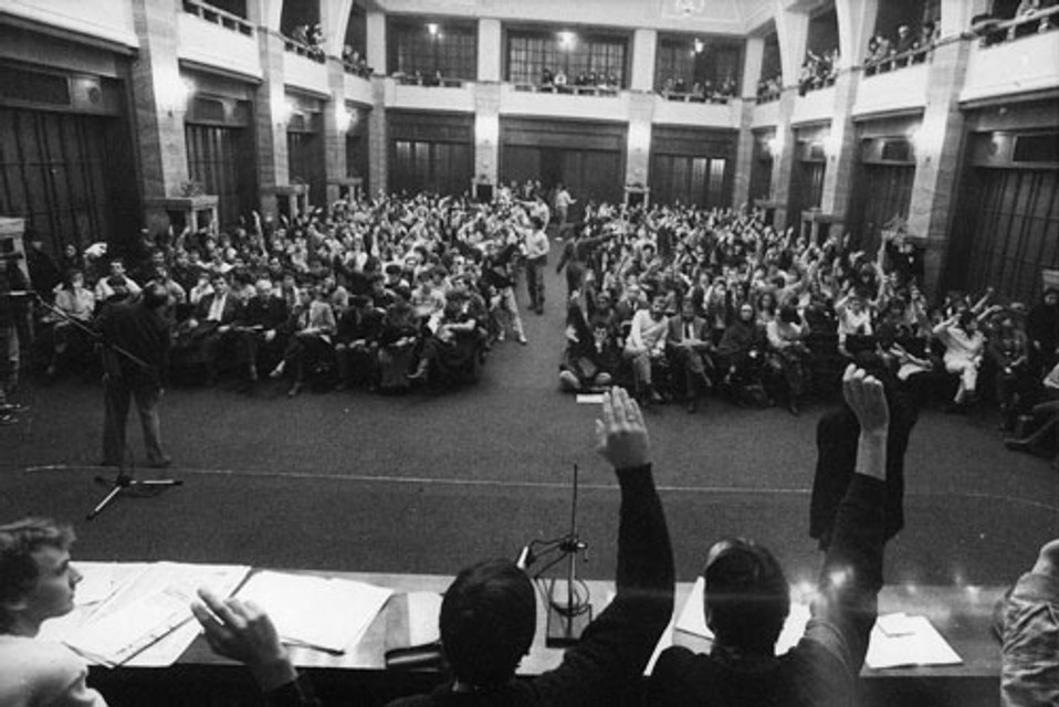Po chvíli sa objavili dekan a ďalší funkcionári filozofickej fakulty. Na naliehanie študentov a niektorých učiteľov otvorili aulu univerzity, kde si členovia vedenia fakulty sadli do kresiel na vyvýšenom pódiu. „Žiadali sme ich, aby zaujali postoj k násilnému potlačeniu pražskej demonštrácie. Vykrúcali sa však a vyzývali nás, aby sme sa venovali štúdiu a nedramatizovali situáciu. Keď sme ani po hodine nedospeli k ničomu, jeden zo študentov ich vyzval, nech odstúpia, ak sa nevedia, či boja vyjadriť, pretože ich prestávame akceptovať ako svojich predstaviteľov. A oni sa zodvihli a sadli si medzi študentov. Asi desiati z nás si potom sadli na ich miesta a tak na Slovensku vznikol prvý vysokoškolský štrajkový výbor," spomína Milan Novotný.