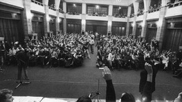 Bývalí študenti filozofickej fakulty pri príležitosti 20. výročia pochodu bratislavských vysokoškolákov a Nežnej revolúcie pripravili na Katedre Žurnalistiky FF UK na Štúrovej ulici 9 výstavu fotografií a dokumentov z novembra 1989.