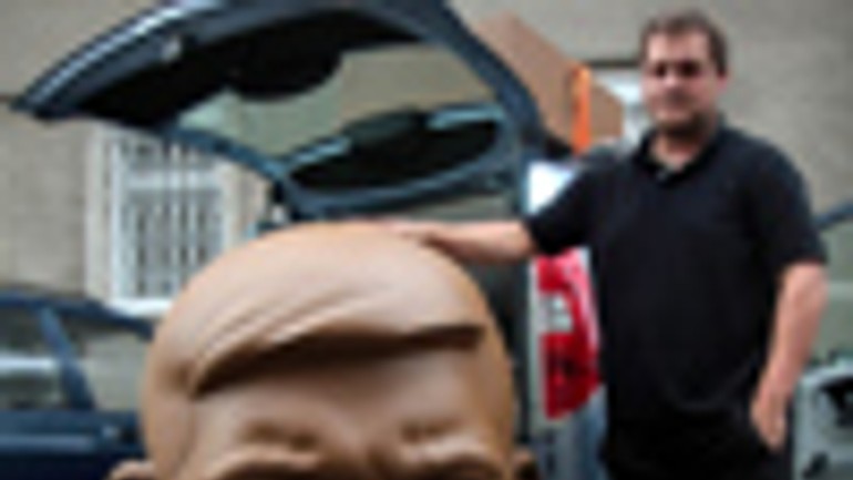 Stratená busta Doc. JUDr. ROBERT FICO, CSc. je už u jej autora Dalibora Baču. Dnes si ju odviezol autom z Okresného riaditeľstva Policajného zboru Bratislava III. Busta, ktorú policajti našli po prehliadke skladu Istropolisu (Domu odborov), nateraz skoční v garáži, pretože ju nie je kde inštalovať.