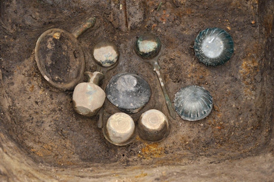 Našlo sa tu sedem bronzových nádob, tri hlinené a dve sklenené misky - všetko importy z Rímskej ríše, ale aj šatové spony, britva, nôž, ovčiarske nožnice, ostrohy a súčasti opasku. „Najmä sklenené nádoby vyzerajú, akoby boli vyhotovené včera a nie pred takmer 2000 rokmi. Osobitnú pozornosť si zasluhuje aj bronzová kanvica s vyobrazeným božstvom, pravdepodobne bohom obchodu Merkúrom. Presne sa tu bude dať určiť až po konzervácii,“ povedal vedúci výskumu Kristián Elschek.