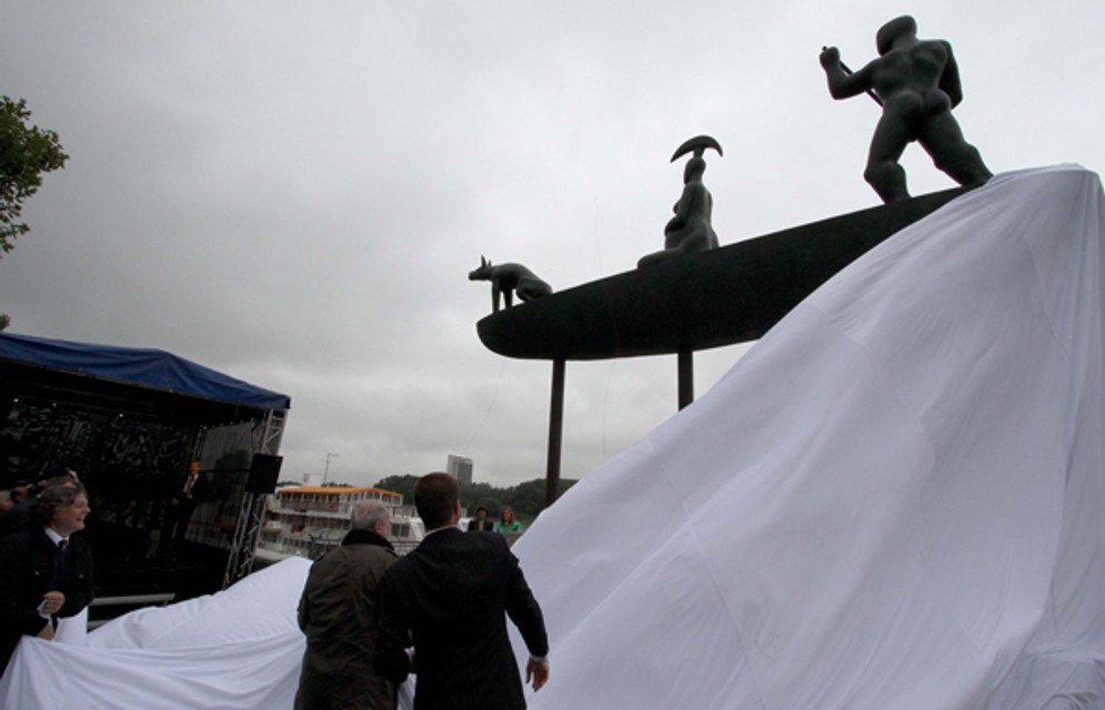 Na promenáde na brehu Dunaja pri River Parku dnes slávnostne odhalili sochu Mýtická loď od Jaroslava Rónu. Sochu slávnostne odhalil spolu s autorom prvý námestník primátora Milan Cílek, hlavný architekt mesta Štefan Šlachta a predseda predstavenstva J&T Real Estate, a.s. Peter Korbačka.