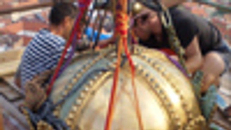 Náročný manéver sa začal vyzdvihnutím koruny z hrotu veže a pokračoval jej spustením pomocou horolezcov, z ktorých jeden korunu počas operácie istil. Naposledy bola koruna z veže spustená v roku 1905 a pozlátená v dielňach zlatníckej firmy Mórica Weinstabla, potom s veľkým úspechom vystavená v dóme v auguste toho istého roka.