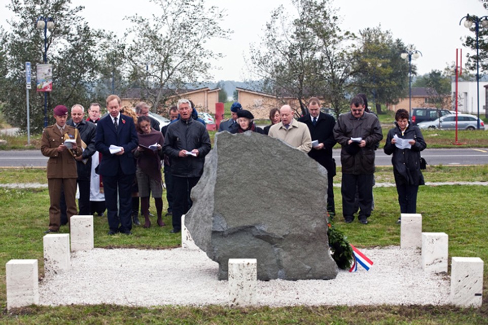 Pamätník odhalilo v októbri 2003 britské veľvyslanectvo v Bratislave vďaka podpore britských spoločností. Vtedy prišli na odhalenie rodiny štyroch obetí. Tento rok obnovili písmo na pamätníku, ktoré už stihlo poškodiť počasie.