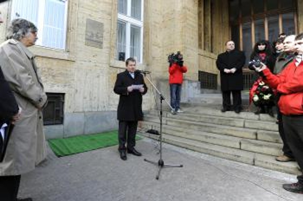 Rektor UK prof. Karol Mičieta spolu s predsedom správnej rady ÚPN Ivanom Petranským položili vence k pamätnej tabuli, ktorá pripomína pamätný pochod vysokoškolákov spred 22 rokov.