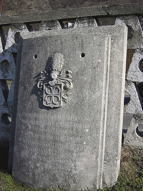 Kameň z tejto rodinnej krypty patril k najstarším hrobom . Je pravdepodobné , že uvedené mená patrili rodine pochádzajúcej zo Saska pôsobiacej na dvore Márie Terézie, členovia rodu boli najmä v službách justície a vojska. Do šľachtického stavu bol rod Marfroni povýšený v r. 1726 Za vojenské zásluhy bol slobodný pán Manfroni z Marfortu vo funkcii viceadmirála odmenený krížom Márie Terézie. Ich meno je zapísané aj v Tirolských šľachtických matrikách.