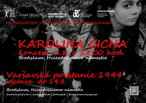 Pri príležitosti 70. výročia Varšavského povstania sa v piatok 1. augusta o 18.00 hod. predstaví na koncerte na Hviezdoslavovom námestí v rámci Staromestského kultúrneho leta poľská speváčka, skladateľka a multiinštrumentalistka Katarzyna Cicha.
