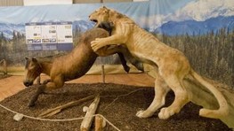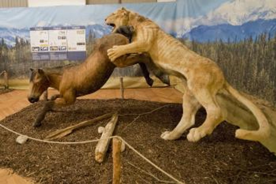 Hneď pri vstupe do expozície návštevníkov upúta svojou mohutnosťou malozubý cicavec leňoch, ktorý dosahoval dĺžku až šesť metrov a váhu tri tony. Do rovnakej dĺžky a ešte väčšej hmotnosti (päť ton) dorástol elasmetérium, trochu menší (štyri metre, dve tony) bol nosorožec srstnatý. Reálnu predstavu o obrovskom mamutovi srstnatom, aj živote ľudí v ľadovej dobe, dáva znázornenie jeho lovu tromi mužmi s drevenými kópiami. Iný príklad prežitia v prírode predstavuje leva amerického pri love koňa. Aj medveď jaskynný, medveď krátkonosý, glyptodon, prabobor, smilodon, epyornis, pásovec, hyena jaskynná či jeleň obrovský sú v skutočnej veľkosti zhotovené podľa vedeckých výskumov.