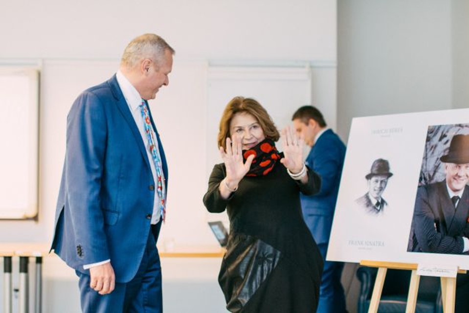 Predseda predstavenstva PSS Imrich Béreš bol nafotený tak, aby sa podobal na amerického legendárneho speváka Franka Sinatru. „My dvaja máme spoločné to, že obaja sme vždy radi spievali a jediný rozdiel je v tom, že jemu to na rozdiel odo mňa aj šlo. Výtvarníčke v tomto jej projekte nejde len o fyzickú podobu osobností, ale vždy sa snaží hľadať i nejakú spoločnú charakterovú črtu.