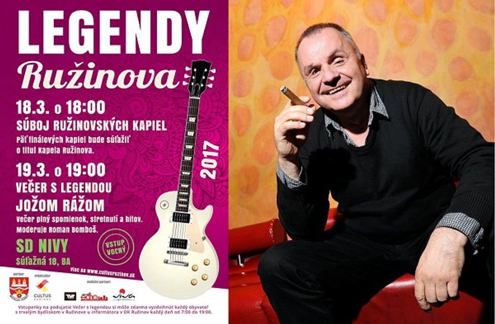 Mestská časť Ružinov a Cultus Ružinov pripravujú druhý ročník podujatia s názvom Legendy Ružinova, ktorý sa uskutoční cez víkend o týždeň, teda 18. a 19. marca 2017 v Spoločenskom dome Nivy. Jeho hlavným cieľom je podporiť pôvodnú slovenskú tvorbu a talentovaných hudobníkov ako aj vzdať hold legendám.