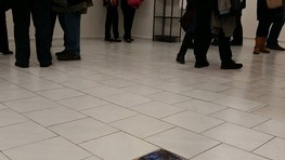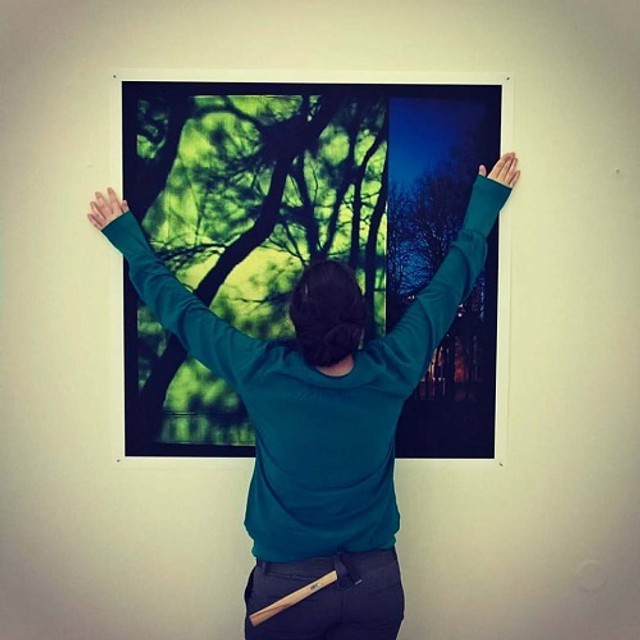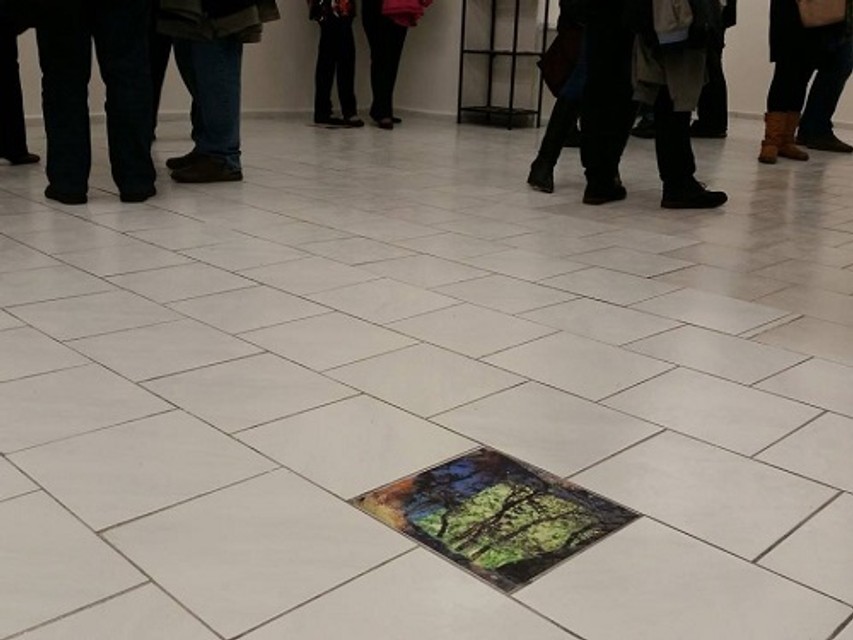 Niektoré fotografie sú na výstave originálne umiestnené na zemi.