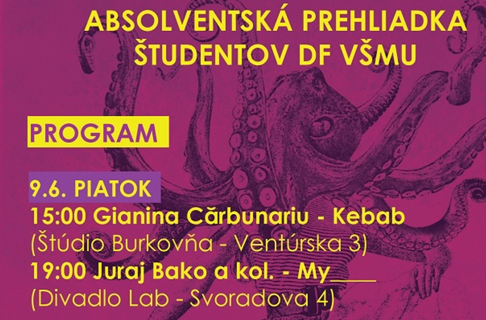 Absolventská prehliadka študentov DF VŠMU sa bude konať v dňoch 9., 10. a 11. júna 2017 na týchto miestach:
