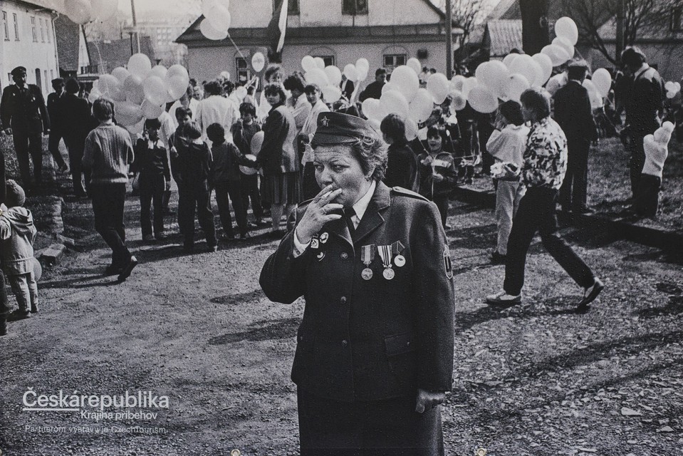 Návštevník výstavy sa pousmeje nad zábermi, ako občania vo voľbách volili mier a život proti jadrovej vojne, oslavovali výročia KSČ a rôzne sviatky v kultúrnom dome aj na verejných priestranstvách. Dokumentom doby je aj obchod západného tovaru za valuty Tuzex, robotníci pri práci a desiatej, predavač mäsa v predajni pri prázdnych hákoch na stene bez zaveseného tovaru, novinová a televízna propaganda či nazretie do domácnosti obyčajných ľudí.