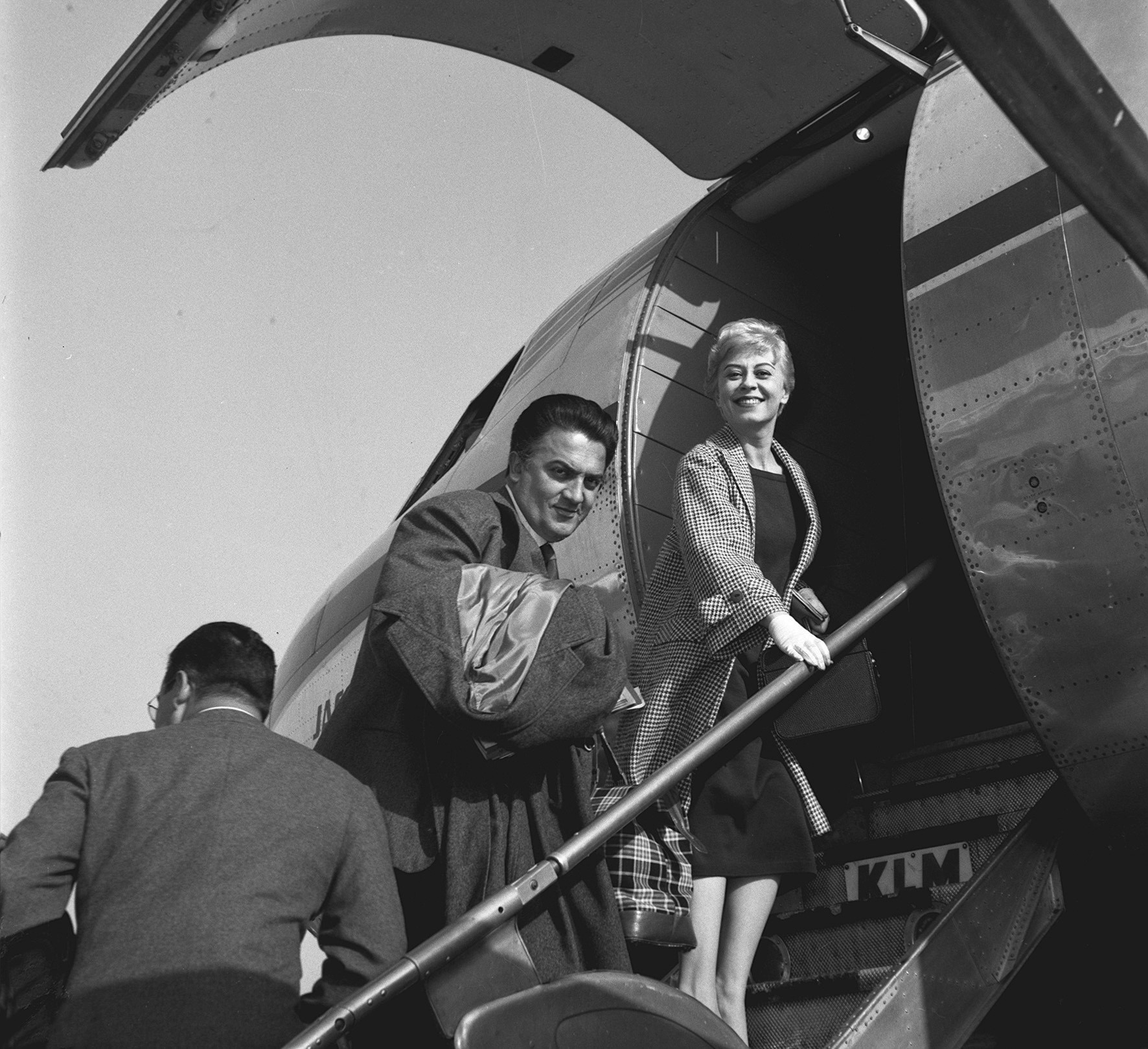 Federico Fellini & Giulietta Masina Letisko Ciampino v Ríme, 22. marca 1957: