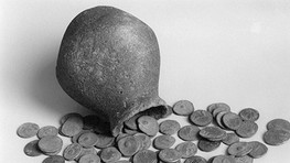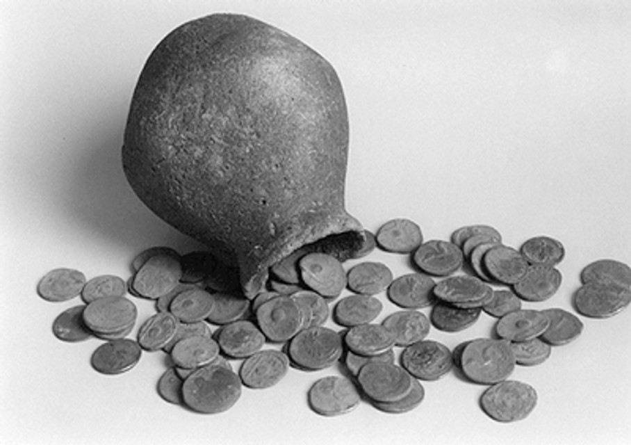 V tesnej blízkosti základov rímskej stavby na nádvorí stredného hradu sa našiel unikátny hromadný nález mincí keltského kmeňa Eraviskov.