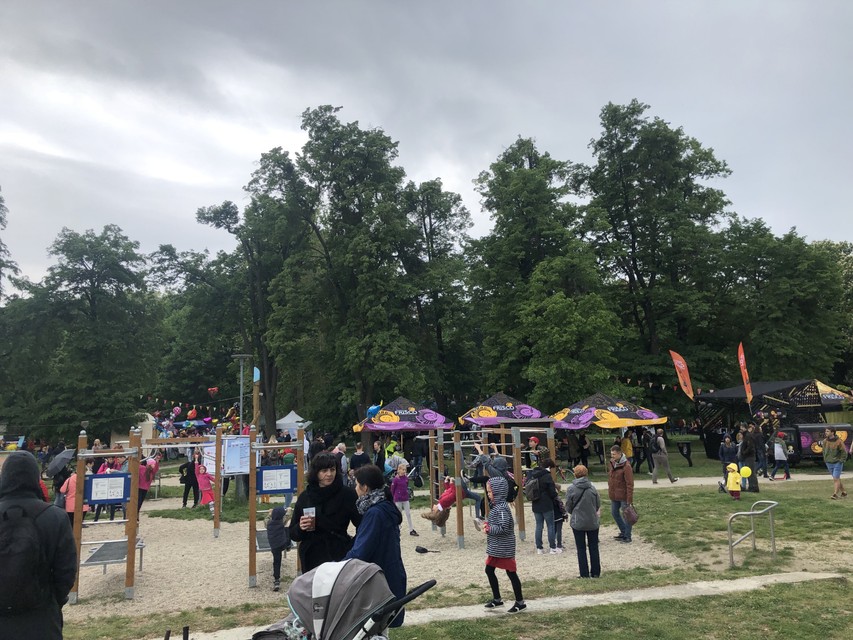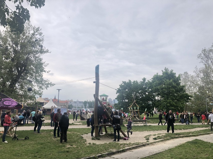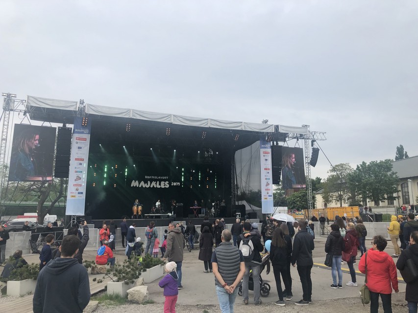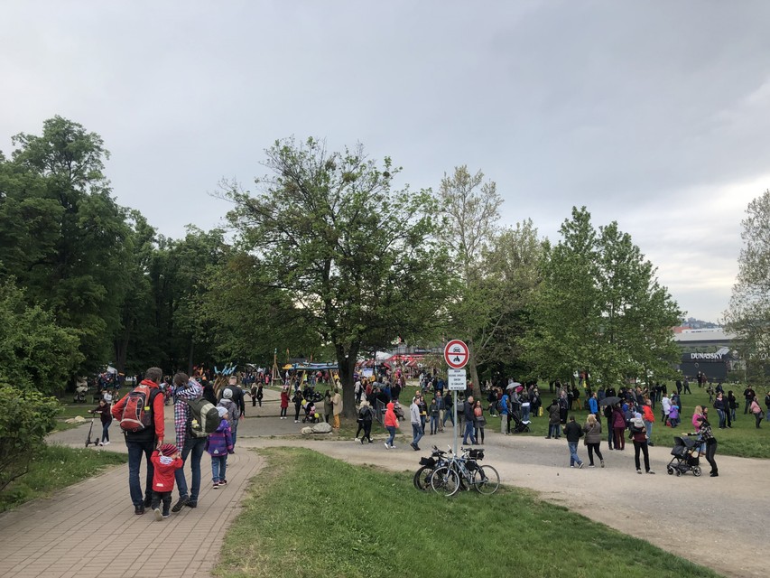 Ak ste sa rozhodli prísť autom, môže sa stať, že nezaparkujete alebo s veľkými problémami, pretože parkovisko bolo v čase nášho príchodu beznádejne plné. Odporúčame vám radšej prísť na Tyršovo nábrežie skôr MHD. Zlé počasie neodradilo od jeho návštevy verejnosť a v skorších hodinách najmä rodín s deťmi, ktorí sa zabávali na nábreží oblečení v pršiplášťoch a zimnejších bundách. Detské ihrisko bolo plné detí, na ktoré čakali stánky s cukrovou vatou, pukancami, balónmi či zábava na trampolíne. Dospelí sa zdržovali v prekrytých stanoch, pivo rôznych značiek nájdete na majálesi asi na 3 miestach, aj keď kvôli počasiu si ho návštevníci vychutnávali tento rok pomenej, okrem toho tam nájdete víno či osviežujúci cider.