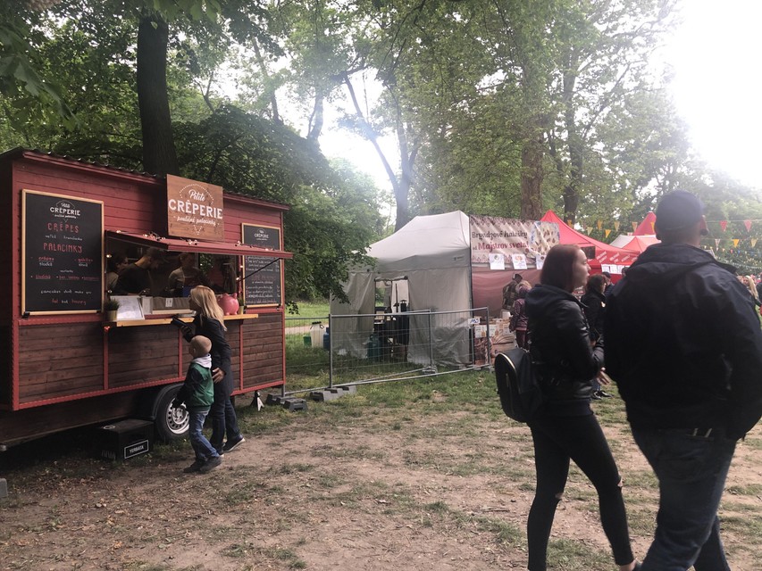 Čo sa týka výberu jedál, ponuka stánkov je celkom bohatá, nájdete tu zdravšie varianty jedál, od gyozy - chrumkavých japonských pirôžkov s teriyaki omáčkou a hľuzovkou, cez francúzske slané palacinky s kozím syrom a jarnou cibuľkou, prosciuttom, ako aj nezdravšie druhy fastfoodu ako je plnený langoš, hot-dog, domáce zemiakové placky či bryndzové halušky. My sme si dali obľúbenú sladkú palacinku so slaným karamelom a banánom.