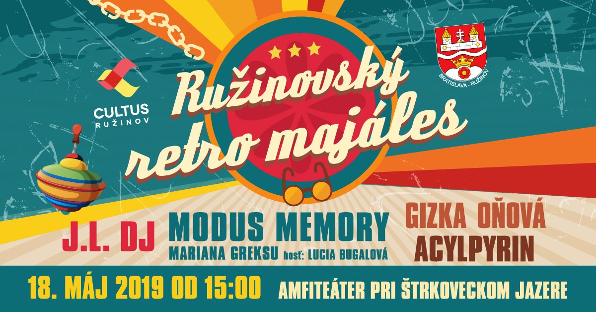 V sobotu 18. mája 2019 pozýva Mestská časť Bratislava-Ružinov a Cultus Ružinov všetkých Ružinovčanov na štvrtý ročník Ružinovského retro majálesu, ktorý do Amfiteátra pri Štrkoveckom jazere prinesie atmosféru obdobia plného tranzistorov, džínsov, laskoniek a retro hitov.