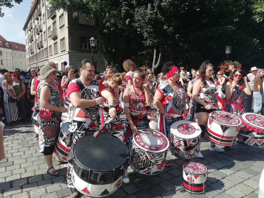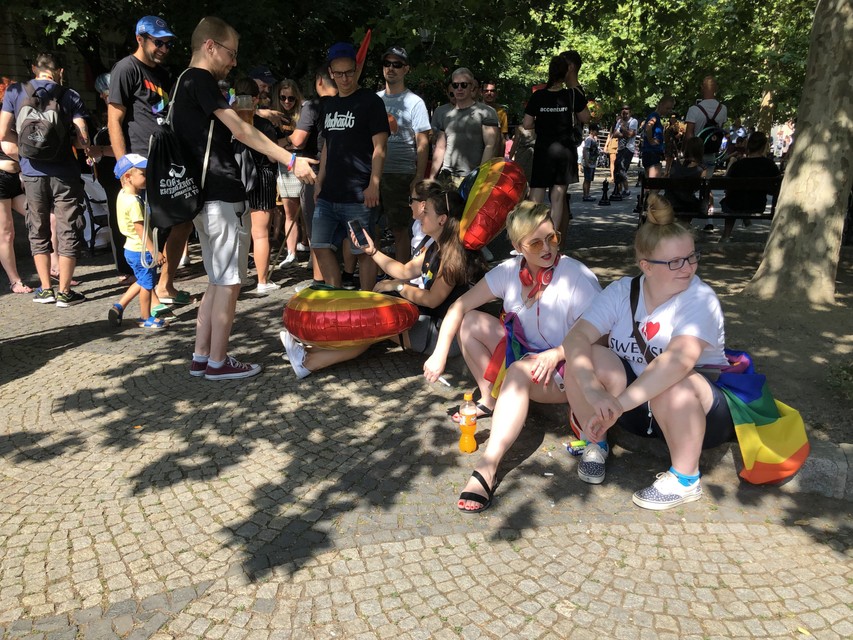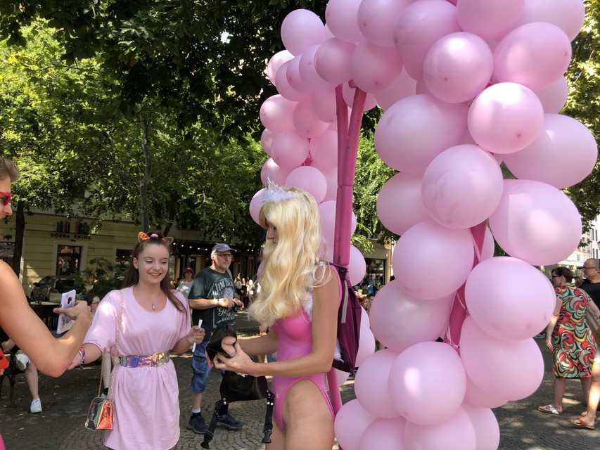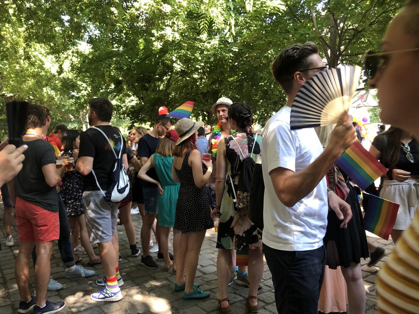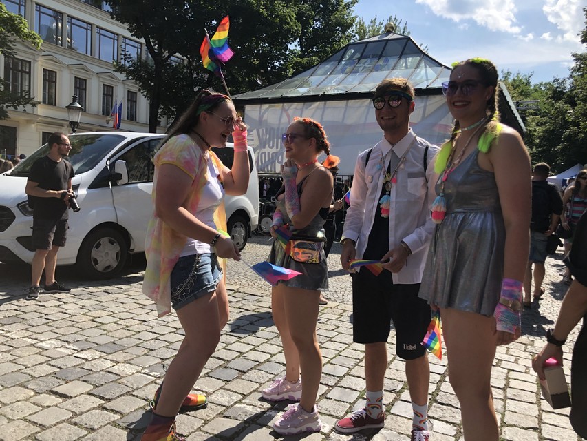 Na námestí sa už tesne pred začiatkom deviateho ročníka Dúhového Pridu zhromažďovali stovky ľudí. Vo vzduchu boli dúhové vlajky, matka s deťmi v kočíku mala dúhové ponožky, oblečené krátke dúhové legíny, na námestí bolo mnoho mladých ľudí, ale aj starší, často vo farebnom oblečení.