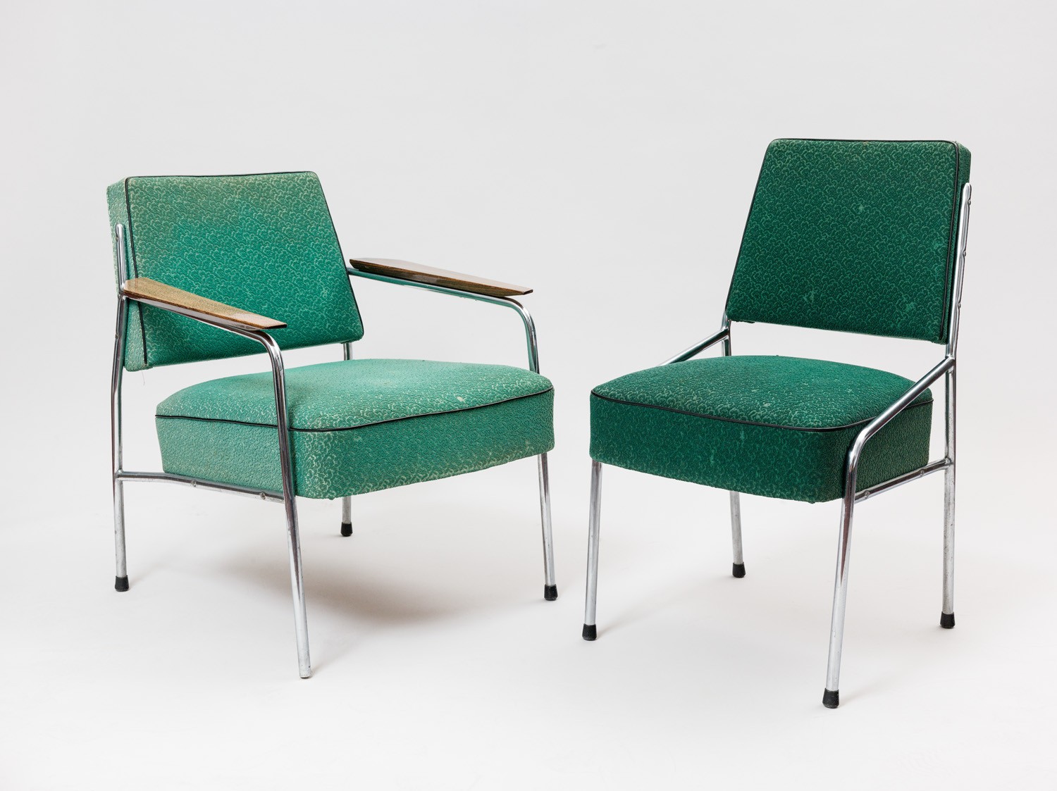 Kreslo a stolička z ohýbaných trubiek, súčasť jedálenského kompletu